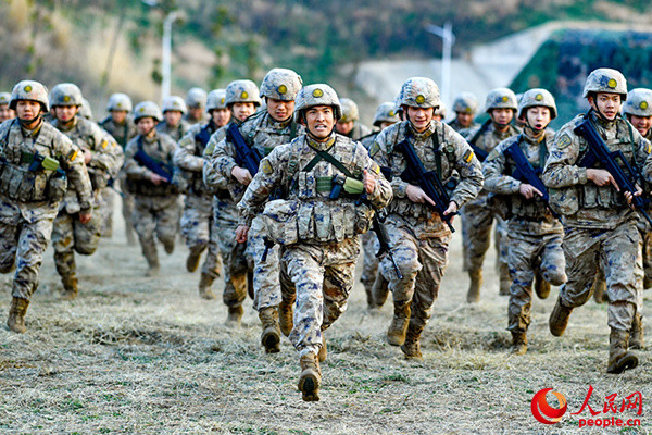张平坤在五公里越野中带领官兵冲锋。刘明松摄